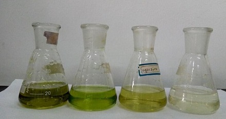 La secuencia es la siguiente: ácido de desecho original, efluente (que contiene solución de ácido ferroso), solución de desorción 1 (que contiene solución de ácido ferroso), solución de desorción 2 (que contiene solución de ácido de zinc).
